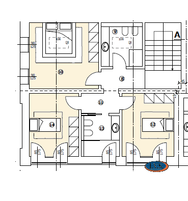 Al PIANO PRIMO: 3 camere, 2 bagni finestrati.